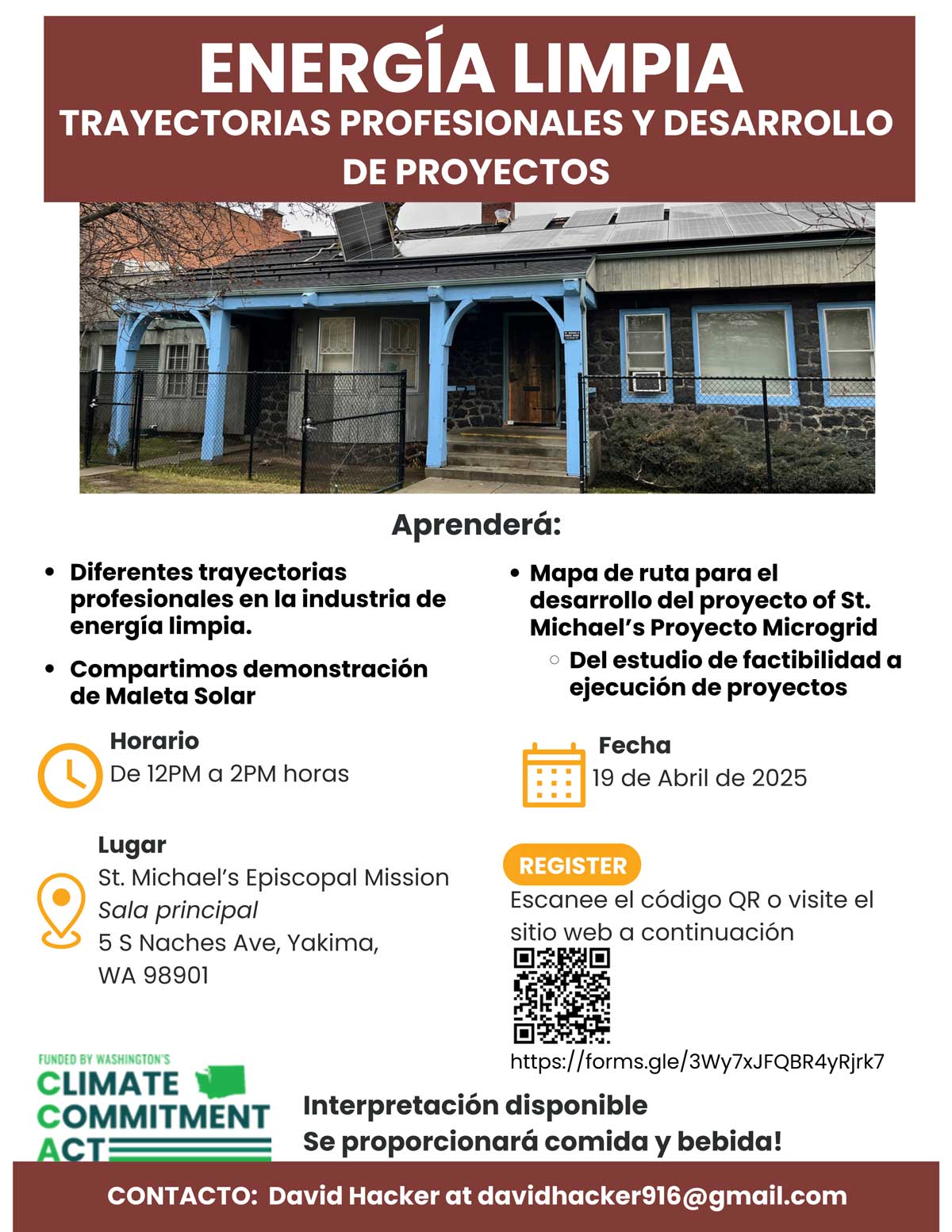 Lugar: St. Michael’s Episcopal Mission, Sala principal: 5 S Naches Ave, Yakima, WA 98901